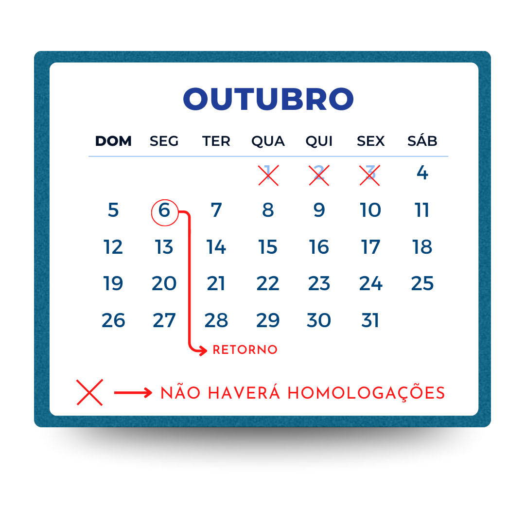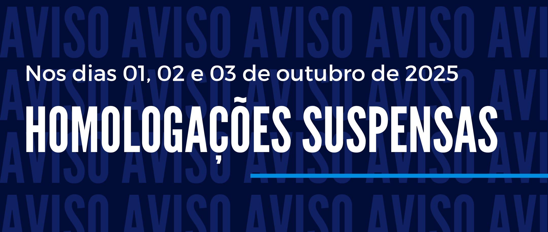 Em virtude das eleições sindicais, não haverá a realização de homologações nos dias 01, 02 e 03 de outubro de 2025 (respectivamente quarta, quinta e sexta-feira).